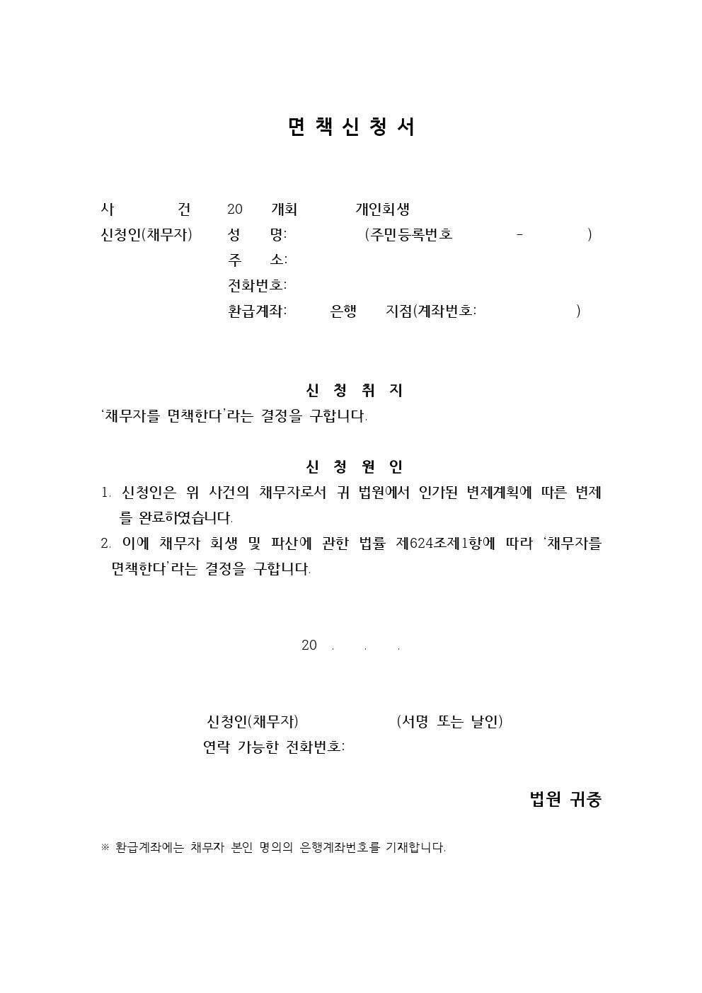 개인회생 면책신청서는 변제 완료 후 반드시 제출해야 합니다.